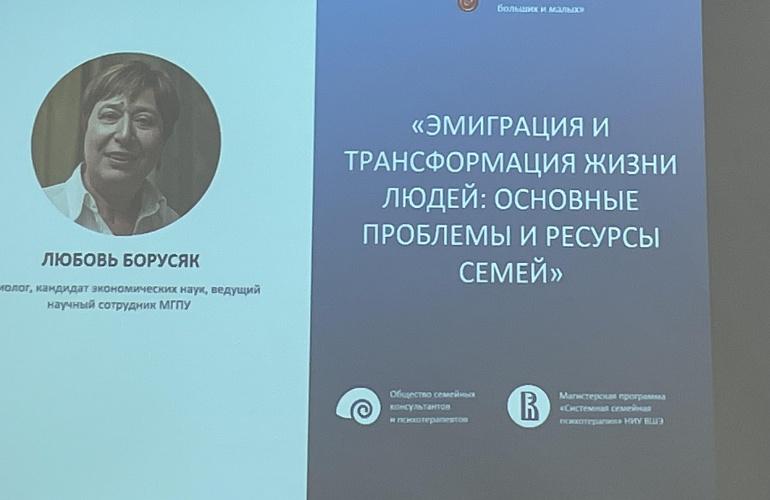 Любовь Борусяк выступила на пленарном заседании конференции с докладом «Эмиграция и трансформация жизни людей: основные проблемы и ресурсы семей». В своем докладе, основанном на результатах лонгитюдного социологического исследования, она рассказала о том, что происходит с семьями эмигрантов, с какими проблемами и вызовами они сталкиваются и как их решают.