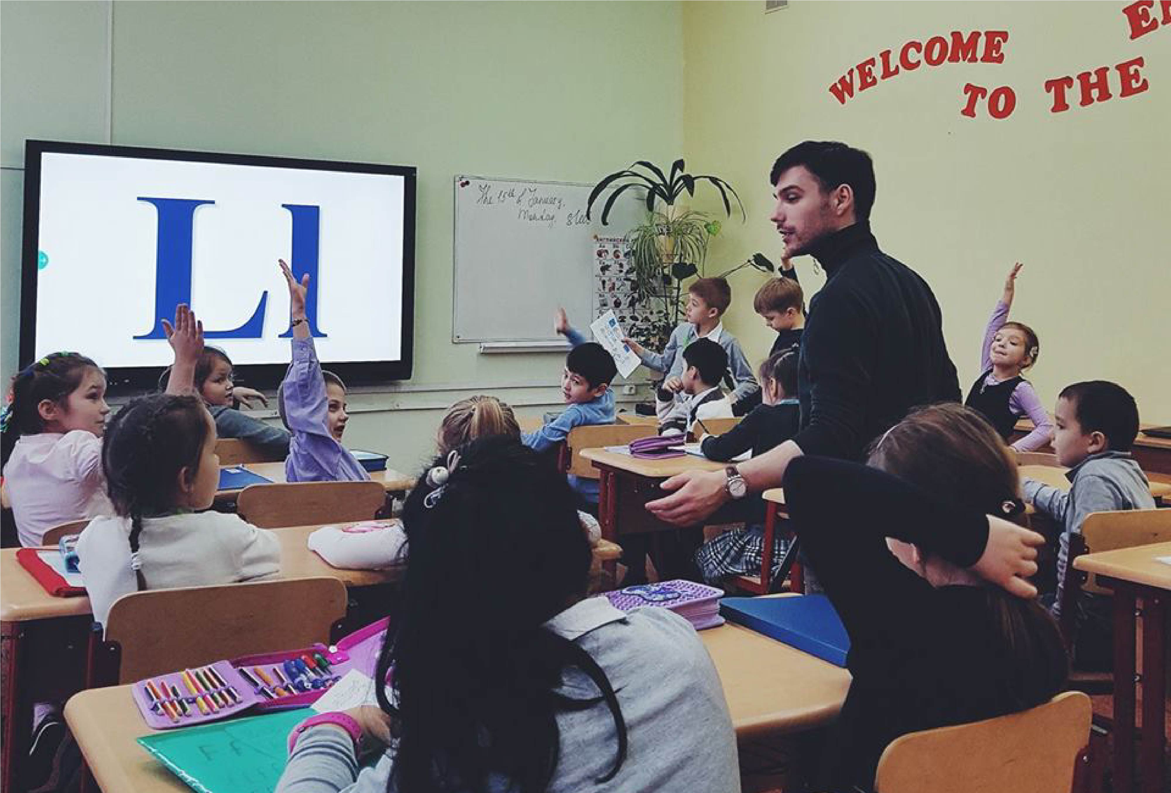 Молодой учитель Тимур Горшков ведет урок английского языка